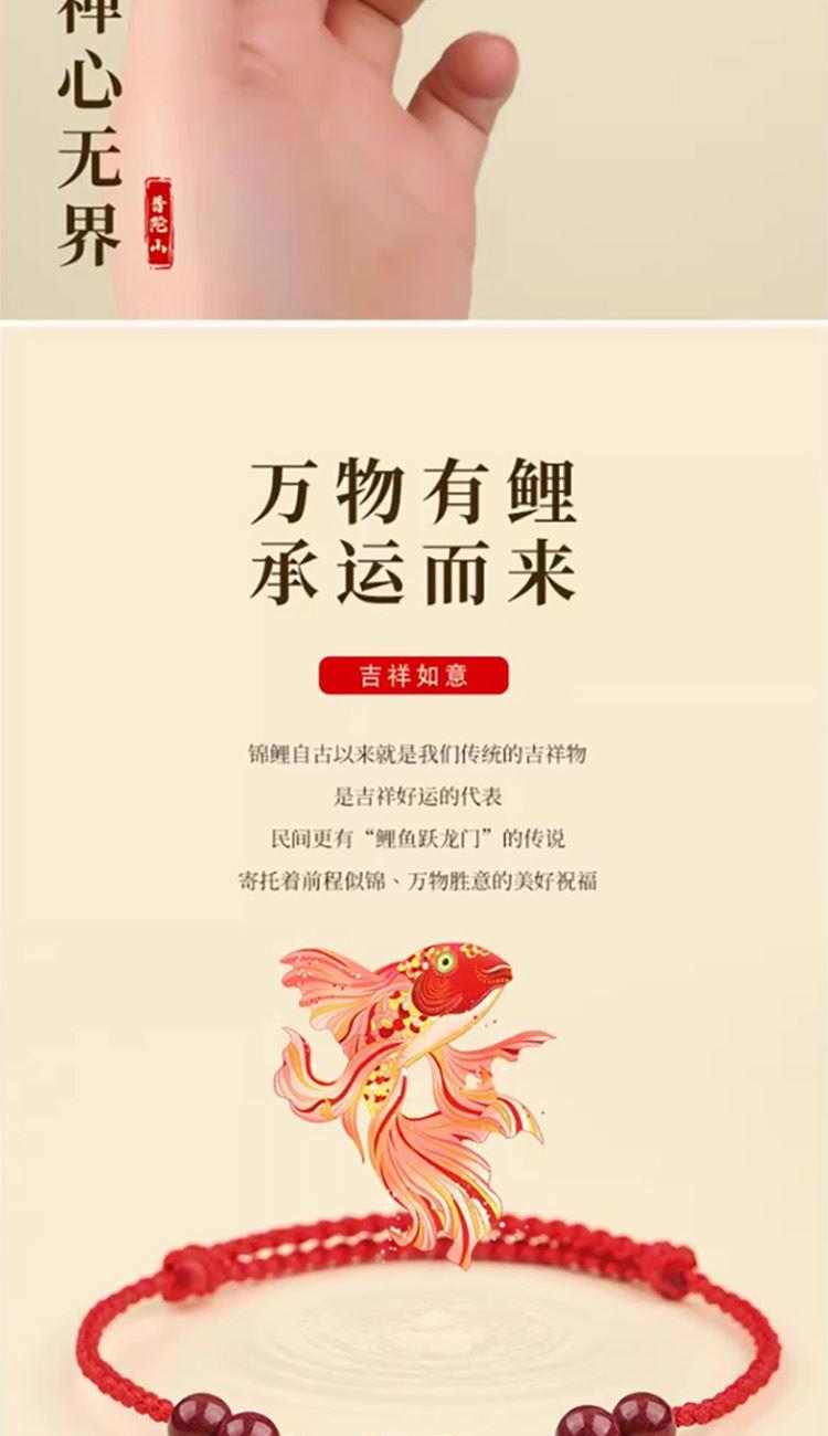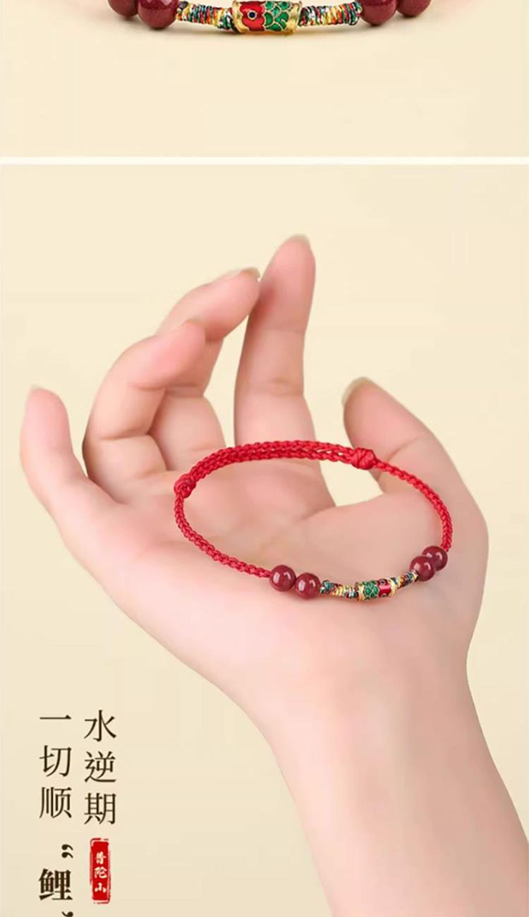 好运加倍,厄运退散: 既招揽锦鲤带来的好运和成功,又得到朱砂强力辟邪的守护,确保好运不被干扰,形成一道强大的“护身符”。寓意着不仅要把好运招来,还要把它牢牢守住。 事业学业双丰收: 非常适合正在奋斗中的人。锦鲤助你“跃龙门”获得成功,朱砂让你心神安定,更好地专注于目标和考试,克服困难与压力。 健康平安: 朱砂的安神寓意与锦鲤的生命力结合,祈求身体康健,精神饱满,远离病痛。