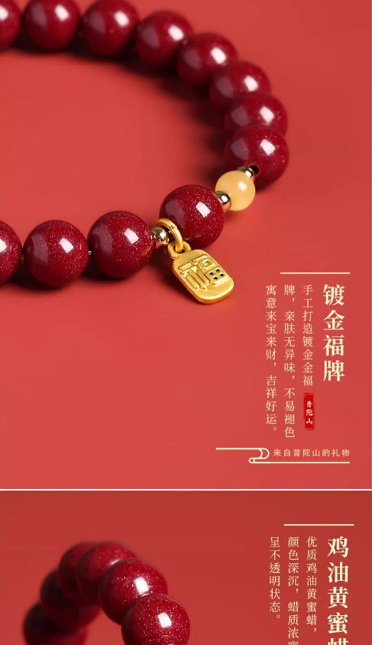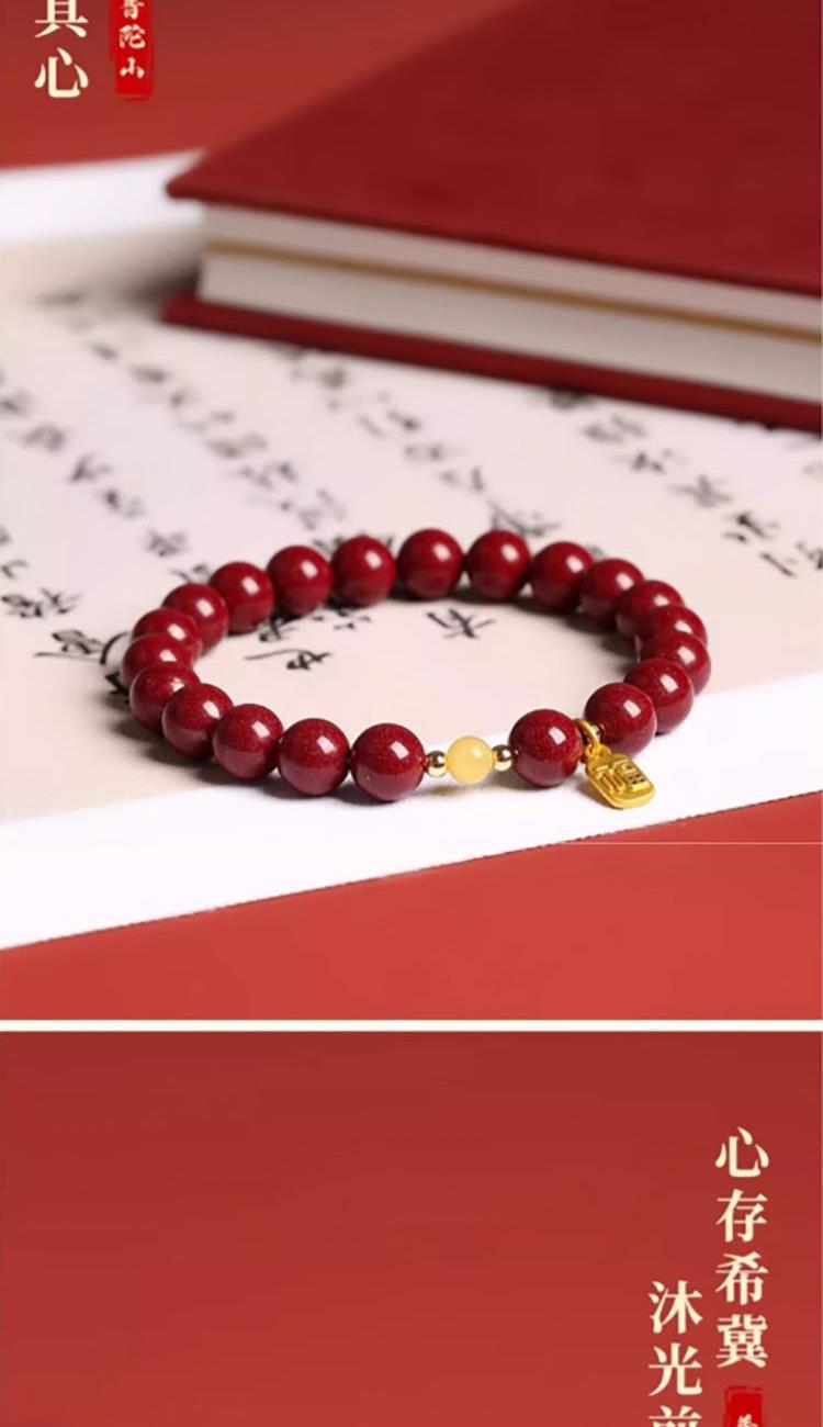 辟邪: 朱砂被誉为“纯阳之石”,寓意能强力阻挡、净化负能量、邪祟和不良磁场的侵扰。 阴阳平衡:朱砂的极阳之气与蜜蜡的至阴之气相结合,达成了风水与能量学上追求的阴阳平衡、和谐统一的状态。这象征着佩戴者能平衡生活中的各种关系,处事刚柔并济,顺遂圆满。