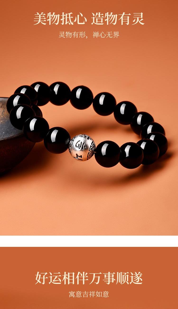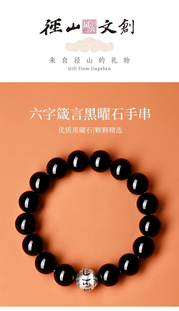 双重辟邪,强力守护: 黑曜石本身已是极强的辟邪物,再加上佛教中具威力的六字大明咒,寓意着辟邪、挡煞、防小人的,是为佩戴者构建的一个“移动保护罩”。 净化与转化: 黑曜石吸收的负能量,可以通过六字箴言的无上佛法能量进行净化和转化,避免负能量堆积。 静心定志: 在紧张或烦躁时,触摸和观看手串,可以提醒自己念诵箴言,从而迅速让内心回归平静,获得精神上的支持和慰藉。