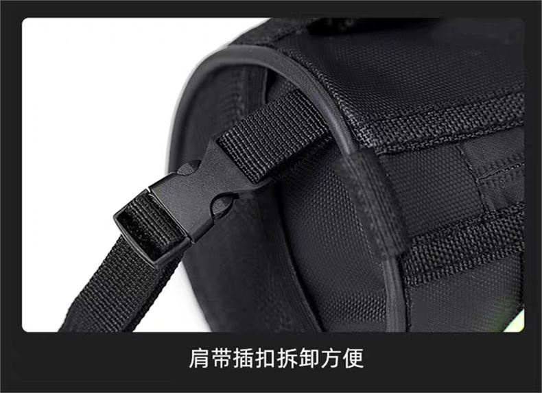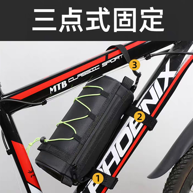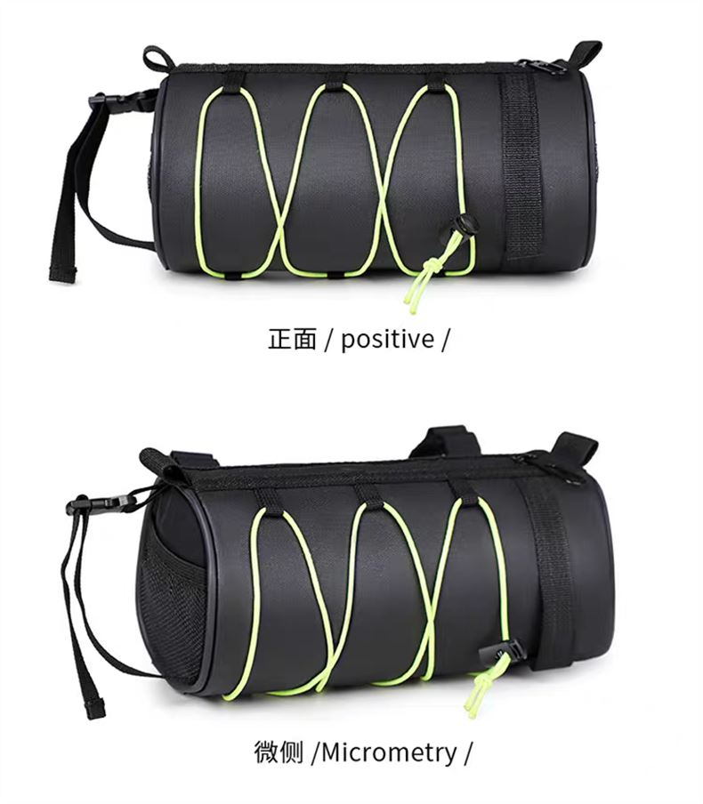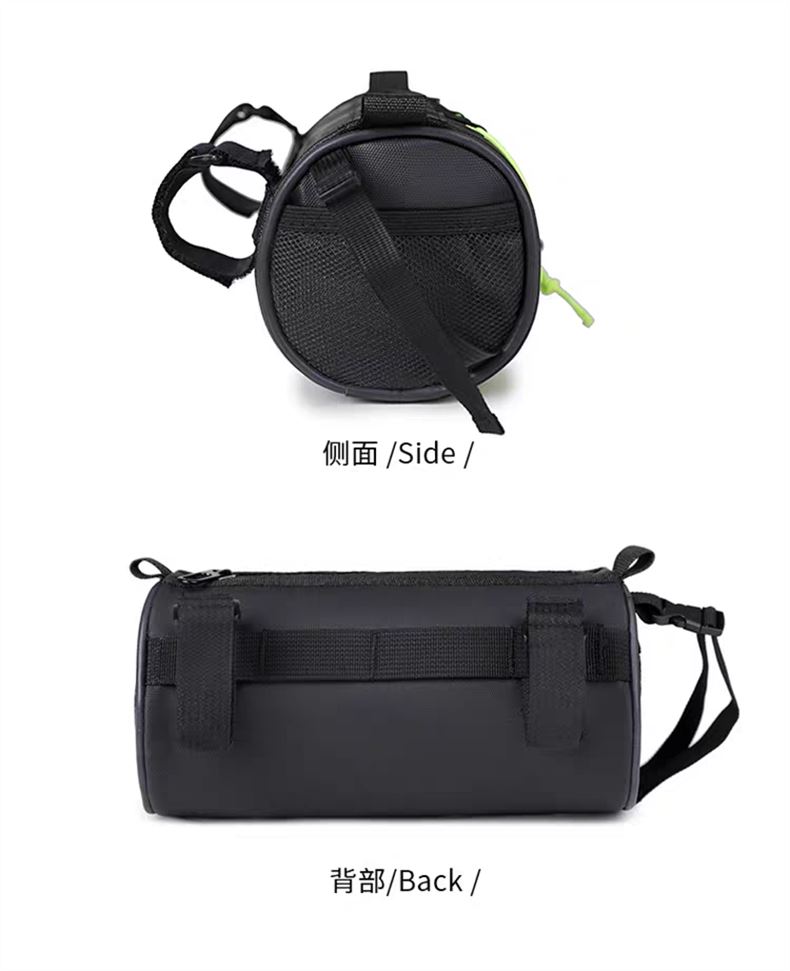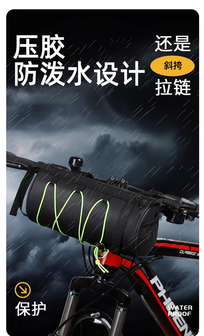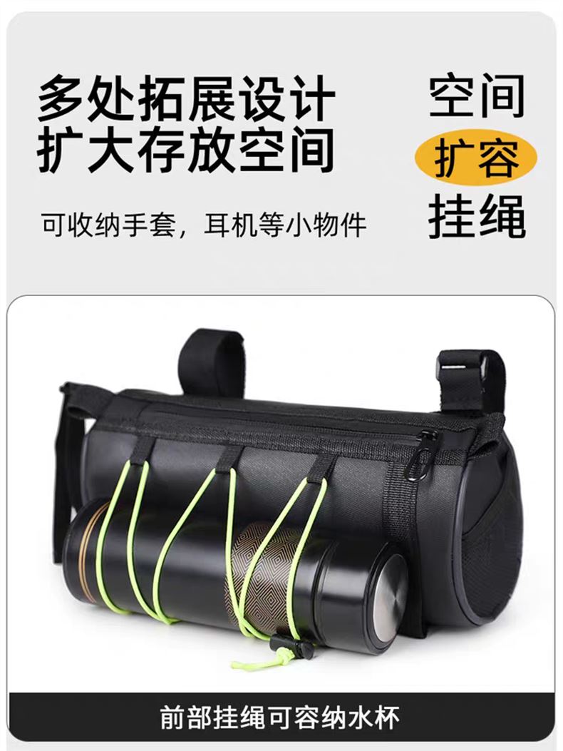 材质 皮膜+尼龙布 颜色 黑色 尺寸 24*12*12cm (测量方法不同,可能存在1-3cm误差,实际尺寸以实物为准) 重量 0.16kg 圆桶形经典设计,容量利用率高,符合骑行装备潮流 专为骑行设计, 满足骑行时所需携带物品 适配车横梁、前车头、车底座、车架等不同位置的安装 轻量化、耐磨、防泼水涂层,是骑行包的理想选择 表面弹力交叉绳,可压缩包体,防止物品晃动,提升骑行稳定性