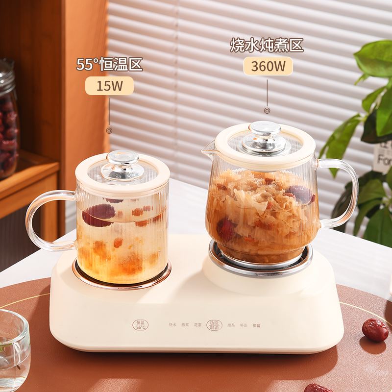 产品组成:整套=电陶炉+1杯壶+提手彩盒 产品材质:电器+玻璃杯壶(高硼硅) 产品功率:360W,15W 产品容量:600ML 外箱尺寸:一箱12公斤,44×66×75CM 产品特点: 煮炖粥、茶、汤等性能好,便于携带,是居家、旅行的好伴侣;耐高温的容器都可以使用。 高品质,精美提手彩盒包装。有颜值兼具实用性,是送礼的佳选。