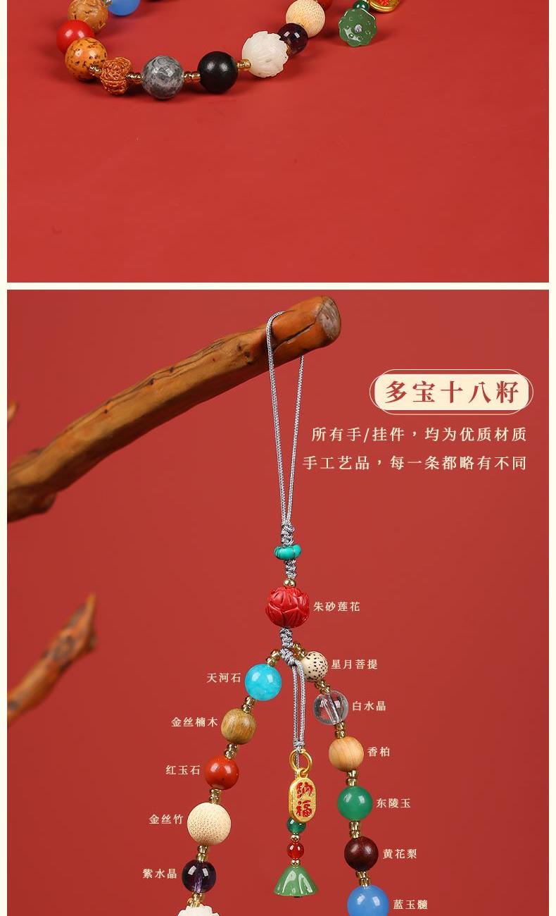 辟邪护身,诸事吉祥: 作为在寺庙中经佛法加持的圣物,十八籽被认为具有强大的护身辟邪功效,寓意能保佑佩戴者平安健康,远离灾祸,所求皆如愿。 静心定志,烦恼消散: 多宝十八籽有助于安抚焦虑情绪,让内心回归平静,专注当下,戒除焦躁。寓意着约束六根、远离六尘、清净六识,从而达到身心清净、解脱烦恼的境界。它提醒修行者要看清世界的本质,不执着于表象。