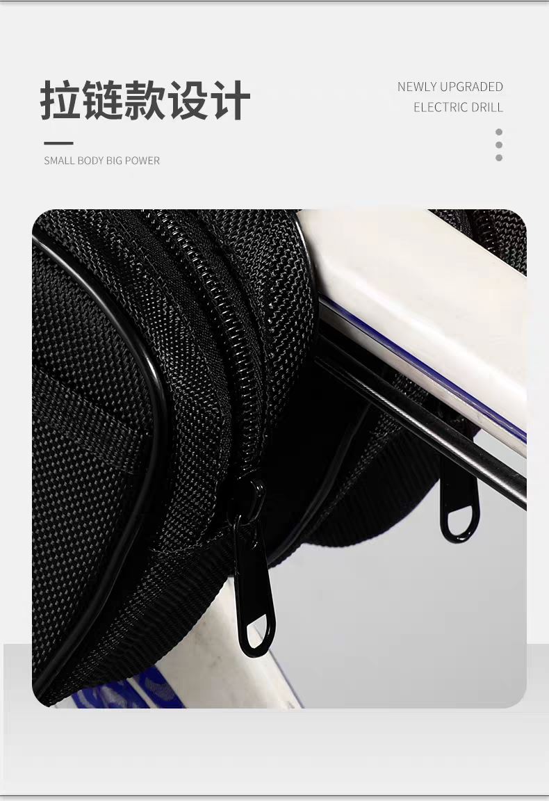 材质 牛津布 颜色 黑色 尺寸 19*18.5.12.5cm (测量方法不同,可能存在1-3cm误差,实际尺寸以实物为准) 重量 0.13kg 左右双仓+中央连接,强力稳固贴合横梁,骑行颠簸不晃动 左右独立双仓设计,轻松分类收纳,存取物品更便捷 高密度牛津布材质,无惧风雨,时刻守护包内物品干爽 抗撕裂耐刮蹭,轻松应对户外骑行挑战 厚实牛津布提供缓冲,骑行颠簸中保护包内易损物品